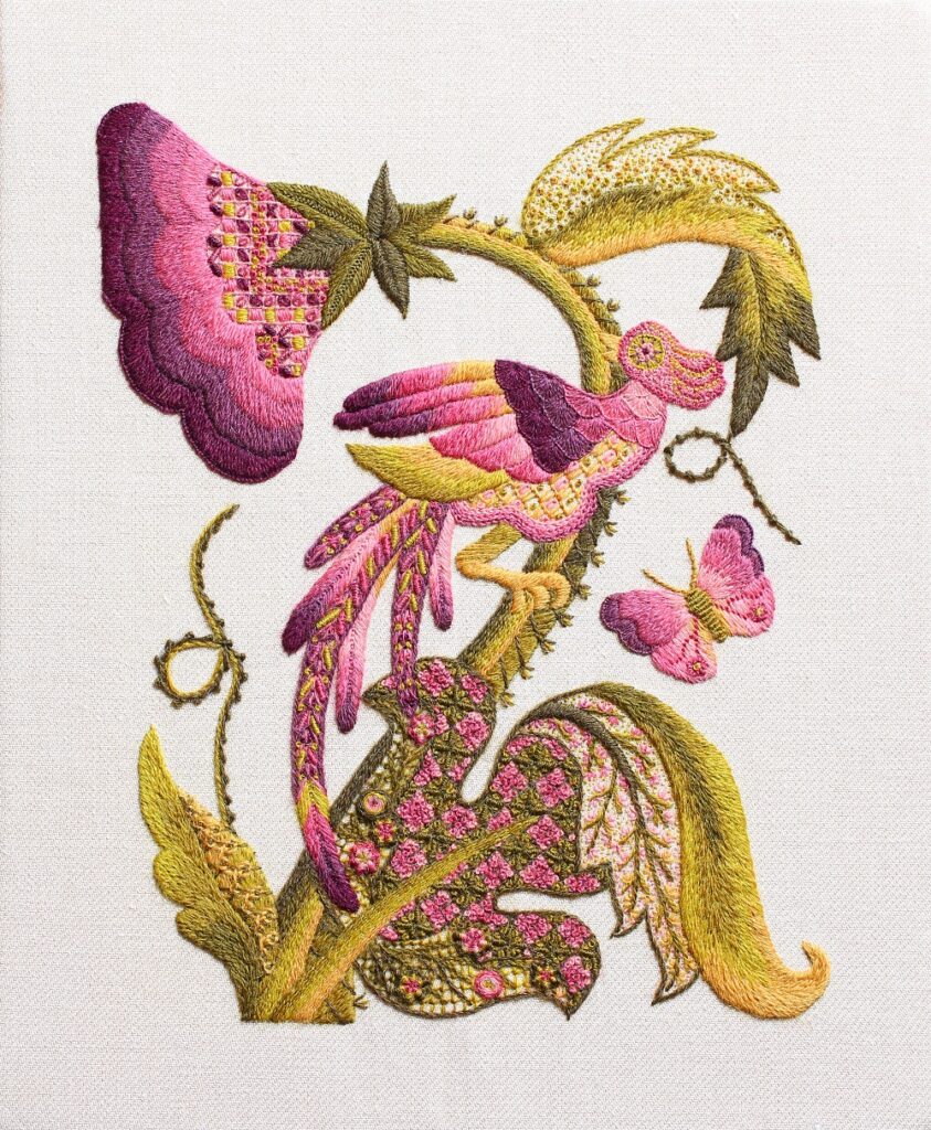 2001 Royal School of Needlework在学中の課題作品。Hilda Watson Silk Prize受賞 Silkwork