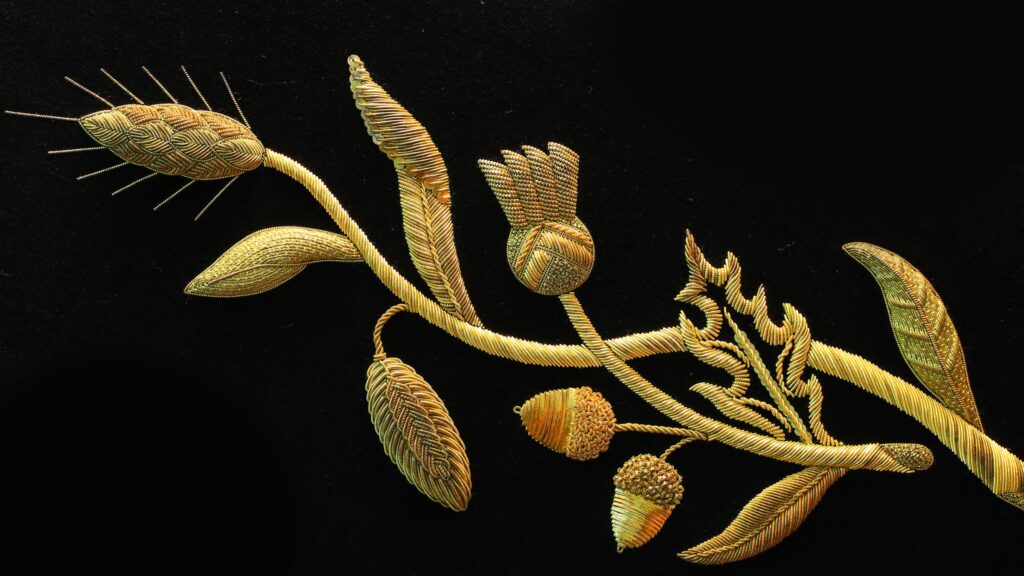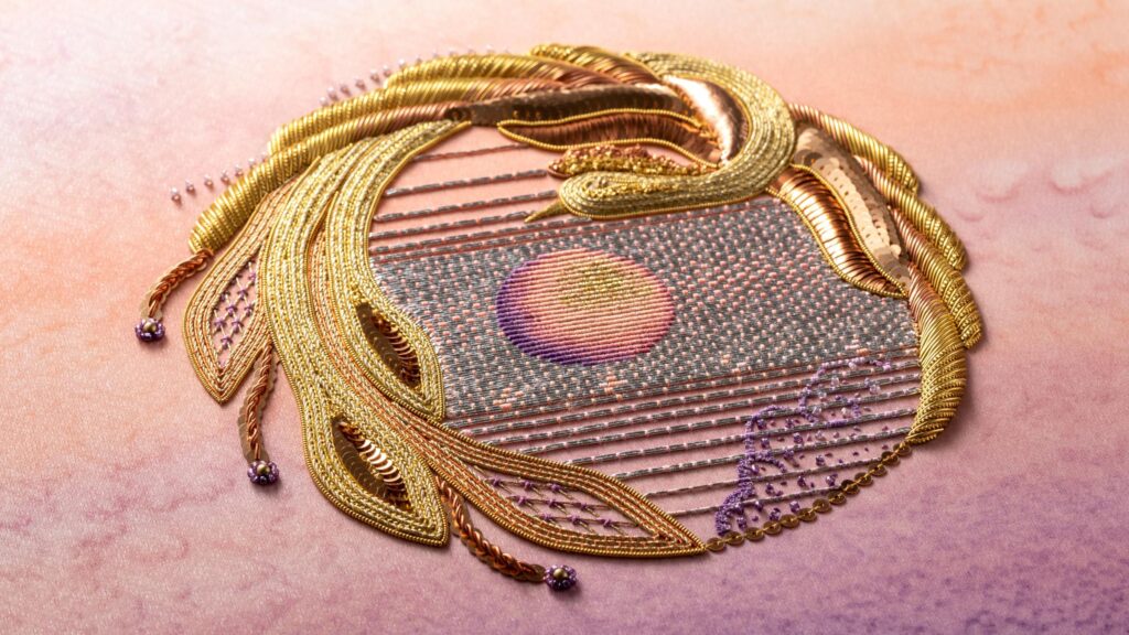 2002 Royal School of Needlework在学中の課題作品。Gold and Silver Wire Drawers Prize受賞 Goldwork