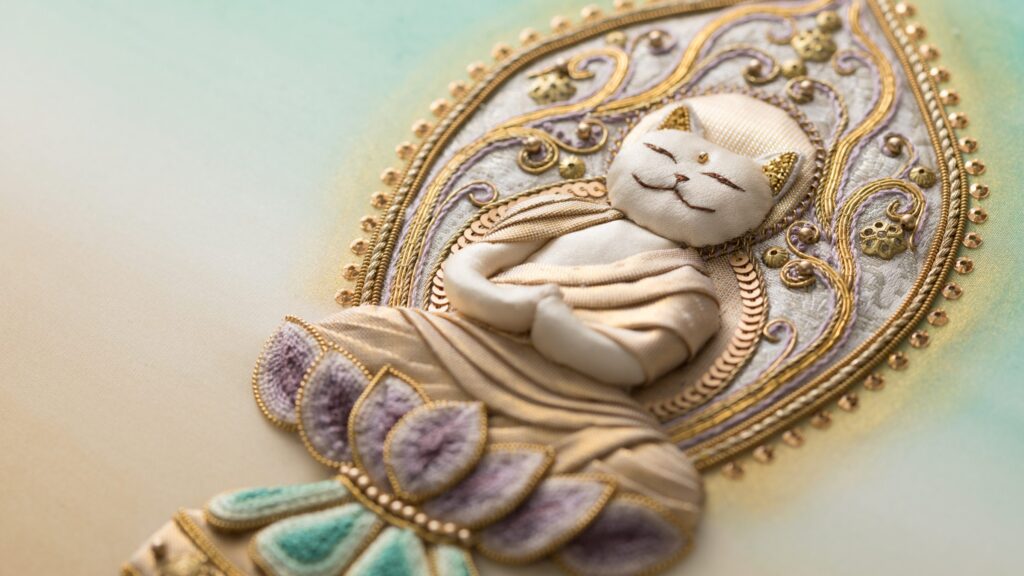 2018 奈良国立博物館「糸のみほとけ」展に合わせて制作 Stumpwork, Goldwork, Silk Painting, Bead Embroidery